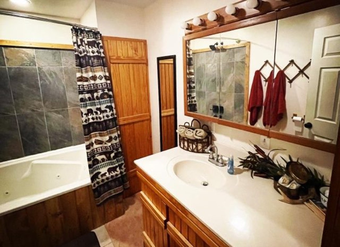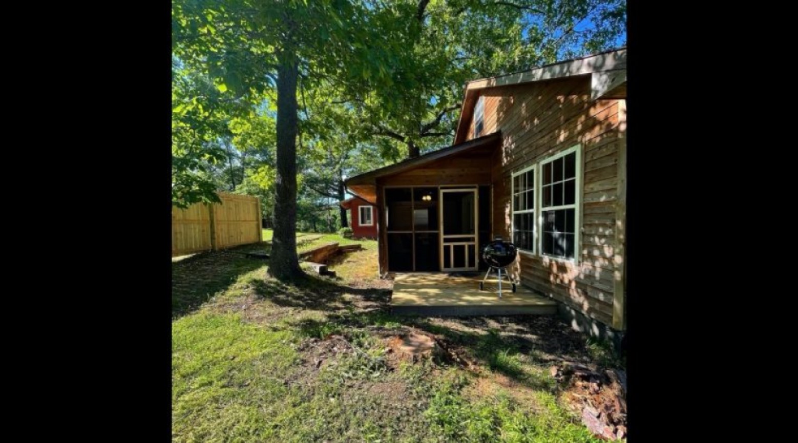The Hideaway is situated on 6 acres with 6 other cabins, there is plenty of wooded space to walk and Lake Leatherwood is just down the road with hiking and mountain biking trails (approximately .6 miles to the trails and it’s possible to ride out). This cabin has a flat driveway and room for a trailer