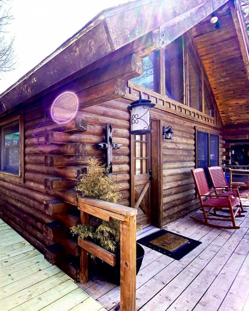 The Luxury is situated at the front entrance on 6 acres with 6 other cabins, there is plenty of wooded space to walk and Lake Leatherwood is just down the road with hiking and mountain biking trails (approximately .6 miles to the trails and it’s possible to ride out). This cabin has a flat driveway with room to park trailers.