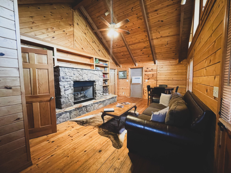 Experience romantic luxury at the Luxury Cabin at Bear Mountain Log Cabins. You’ll enjoy royal comfort in the Majestic King size bed. This cabin includes:
